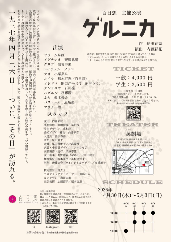 💐百日想主催公演『ゲルニカ』💐フライヤー公開&チケット発売開始!